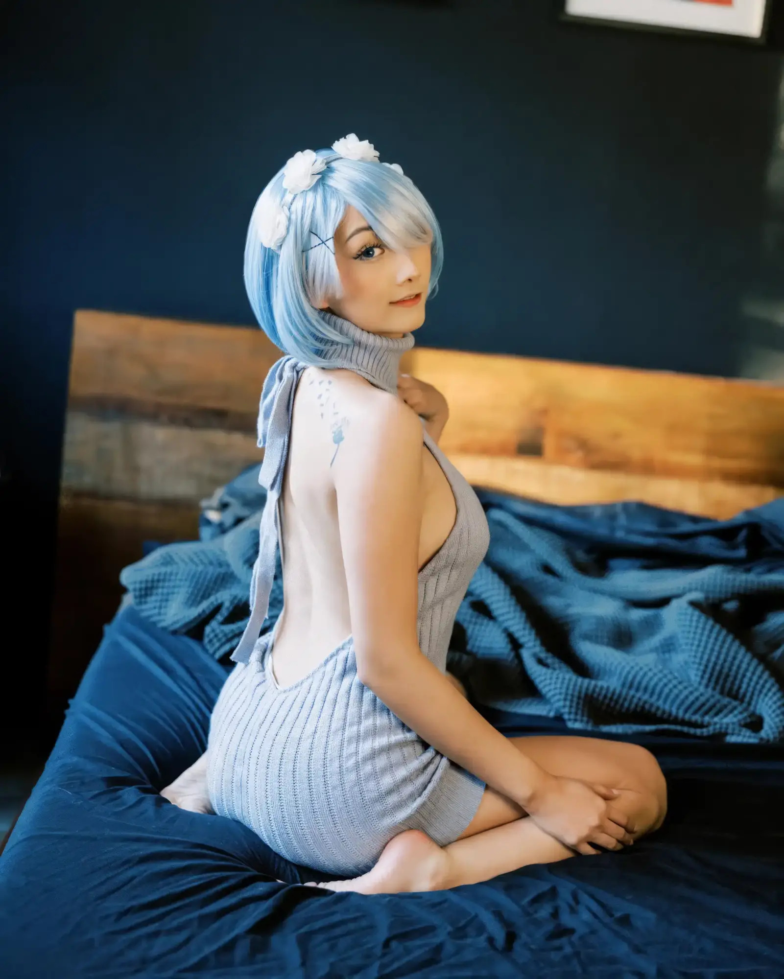 Because the back and sides are open, traditional bras almost never work. The reliable alternatives are adhesive nipple covers, silicone or fabric stick on cups for lift, medical grade body tape for shaping, and a very low micro thong in a color close to your skin tone. Test all adhesives on a small area the day before a session to rule out irritation. The most convincing outfits treat support as an invisible foundation and layer style on top. Overknee socks and sheer or opaque stockings draw the eye down the legs and help the mini length feel intentional rather than accidental. A slim choker or a soft collar echoes the tall neckline, and a cropped cardigan or a faux fur shrug can act as a quick modesty layer when moving between rooms without destroying the back view when removed. If you wear long hair, plan two looks: hair down for the front shots and hair lifted or tied for the back shots so the oval opening reads cleanly in at least a few frames. Small choices like matching nail polish to the knit color or selecting metallic accessories that repeat a chain strap detail create the impression of a styled character rather than a random sweater worn indoors.