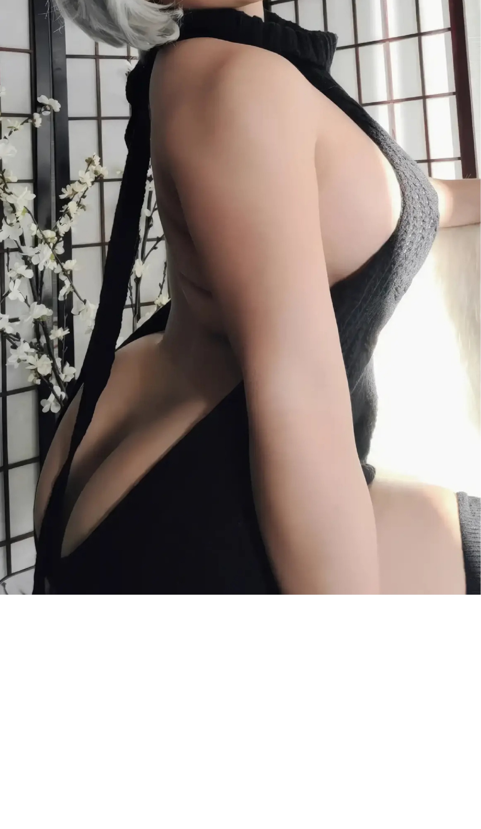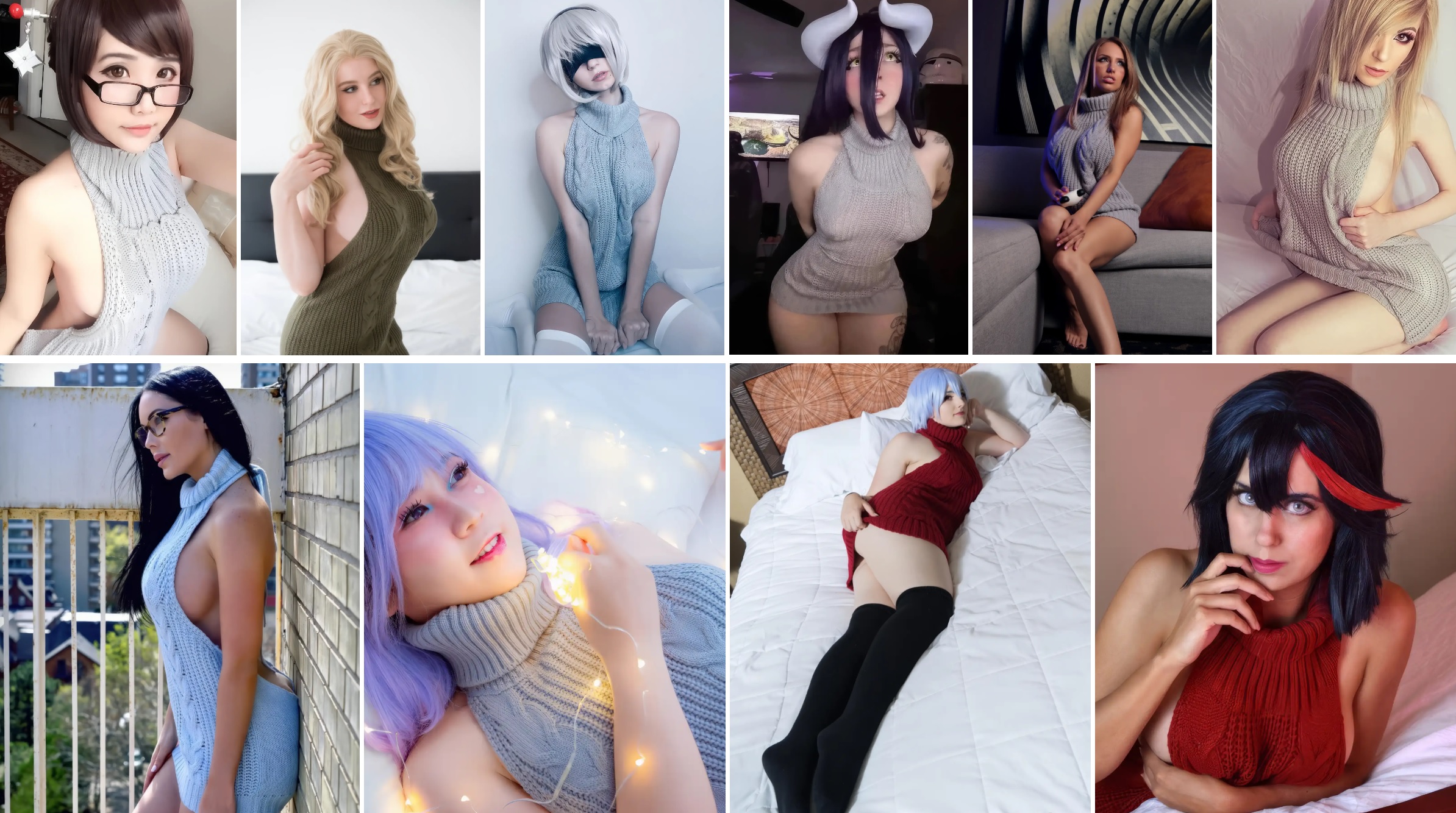 Because the back and sides are open, traditional bras almost never work. The reliable alternatives are adhesive nipple covers, silicone or fabric stick on cups for lift, medical grade body tape for shaping, and a very low micro thong in a color close to your skin tone. Test all adhesives on a small area the day before a session to rule out irritation. The most convincing outfits treat support as an invisible foundation and layer style on top. Overknee socks and sheer or opaque stockings draw the eye down the legs and help the mini length feel intentional rather than accidental. A slim choker or a soft collar echoes the tall neckline, and a cropped cardigan or a faux fur shrug can act as a quick modesty layer when moving between rooms without destroying the back view when removed. If you wear long hair, plan two looks: hair down for the front shots and hair lifted or tied for the back shots so the oval opening reads cleanly in at least a few frames. Small choices like matching nail polish to the knit color or selecting metallic accessories that repeat a chain strap detail create the impression of a styled character rather than a random sweater worn indoors.